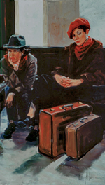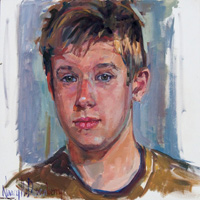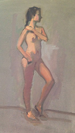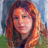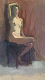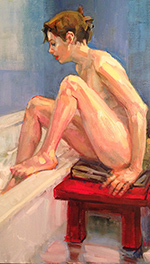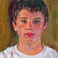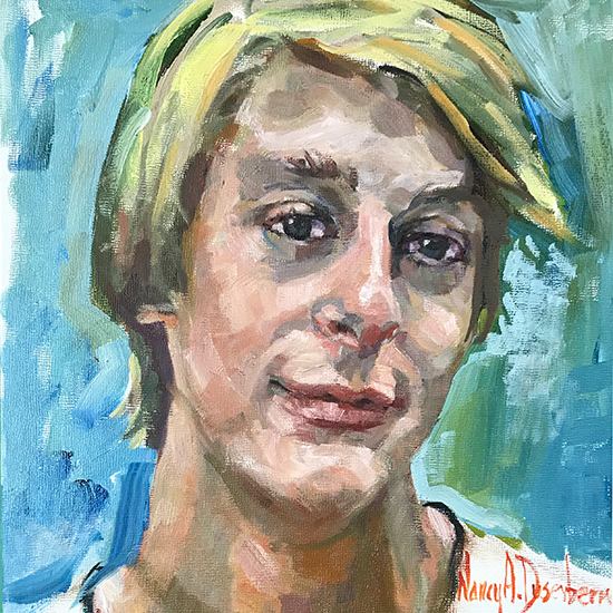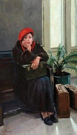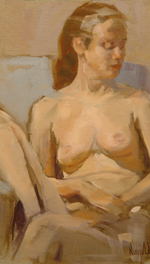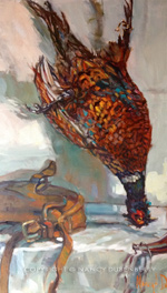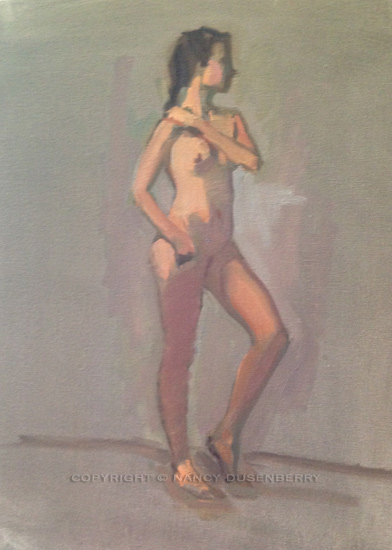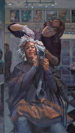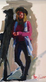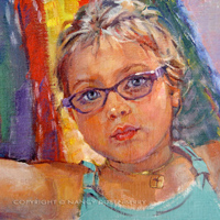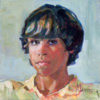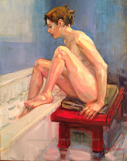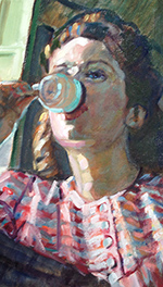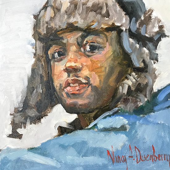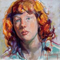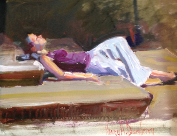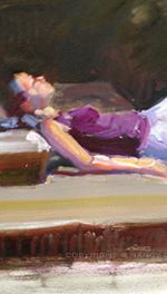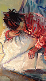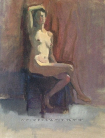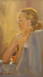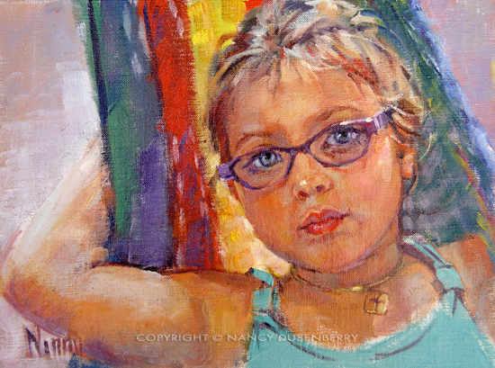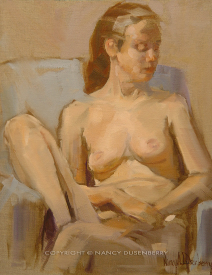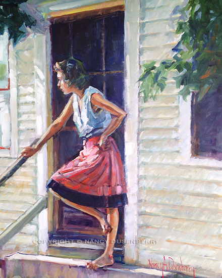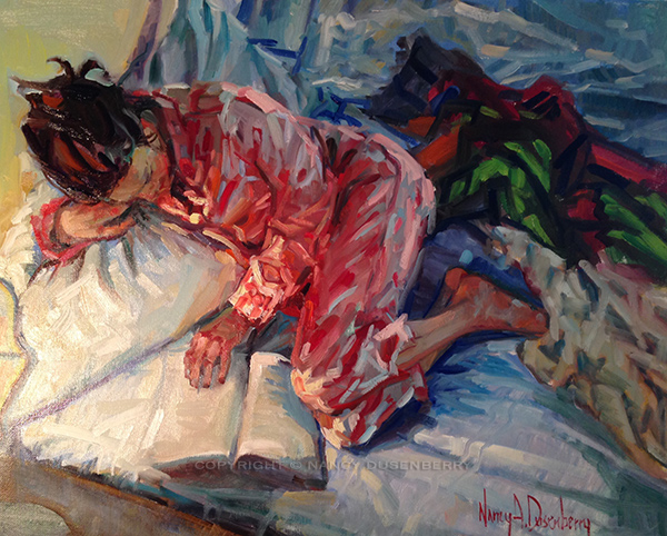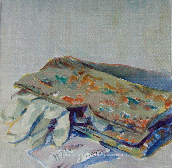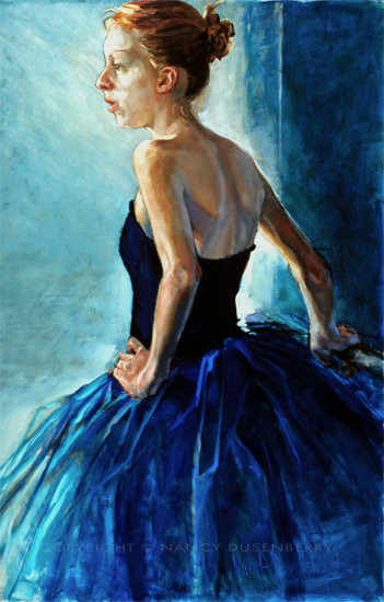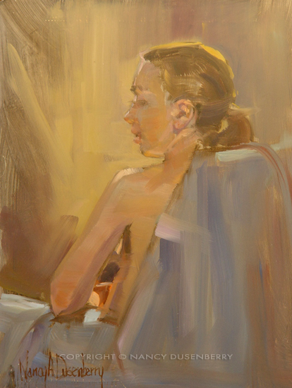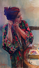 We may not be typical, but the way my family chronicles time and events is by what we wore. We remember it all. Each of us can describe Mother’s coats, shoes, hats and gloves. We enrich every “coat and white pique hat, and I was in that blue faille duster with matching tam.” We test each other’s memories with the likes of, “What coats hung in the back hall on Oak Street?” and laugh until we fall down remembering Daddy in his brown jacquard bathrobe, hair all wild with sleep, shod in size 14 moccasins, scaring suitors off of our front porch. Once I asked my 100 year old, blind and nearly deaf Grandmother what she did with her time. She answered, “I remember.” I know the fabric of the women I have painted. I know which ones were vulnerable, which ones confident, which ones funny, which ones zany or not to be trifled with. I love to paint women wearing the clothes they chose.